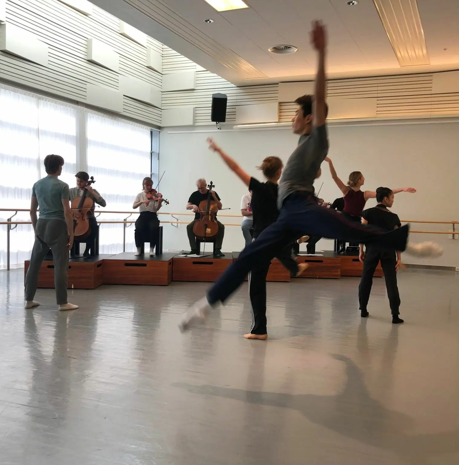 Nasjonalballetten UNG og orkesterakademiet KonstKnekt under øvinger på Den Norske Opera & Ballett i Oslo, mars 2023. Foto: Vinterfestspill i Bergstaden